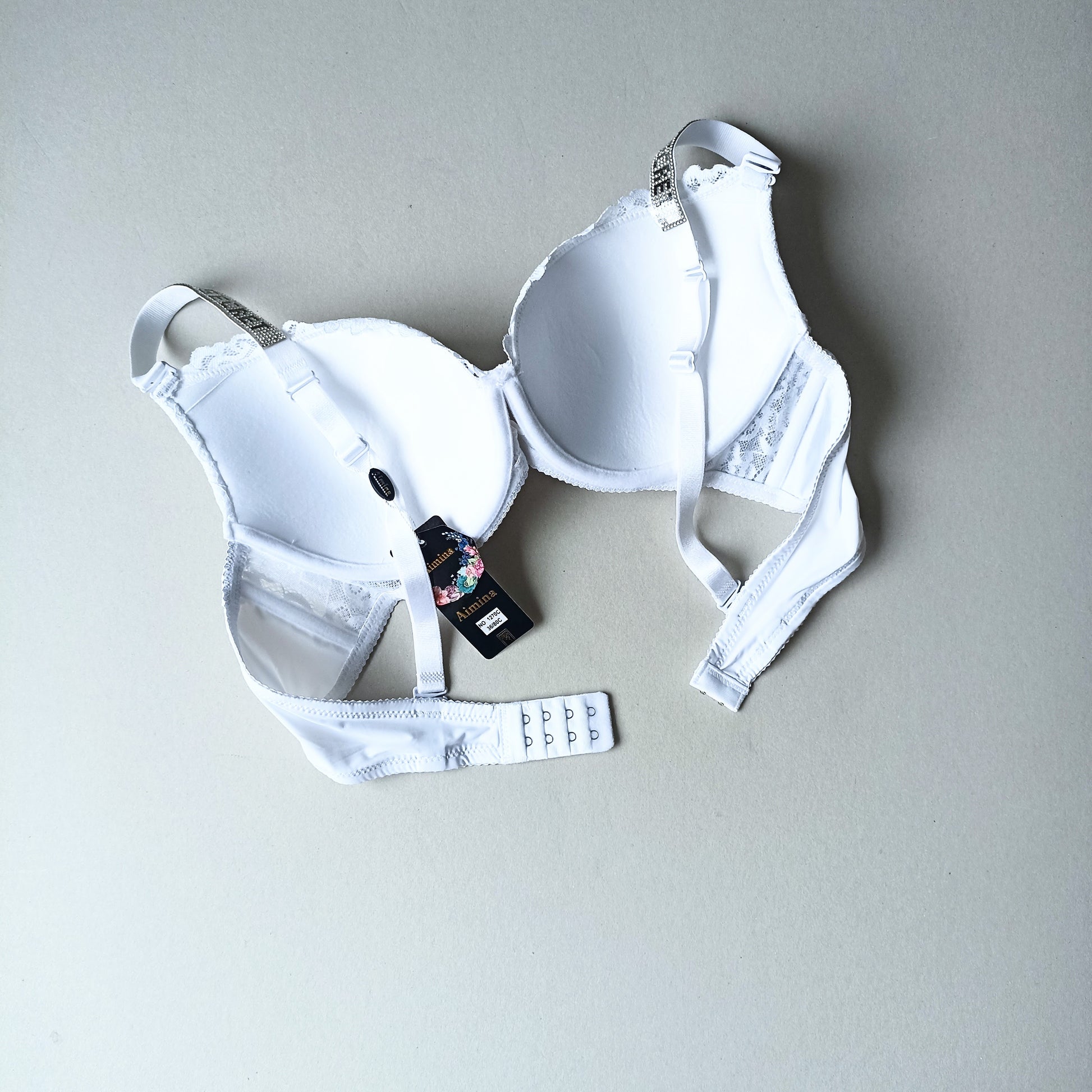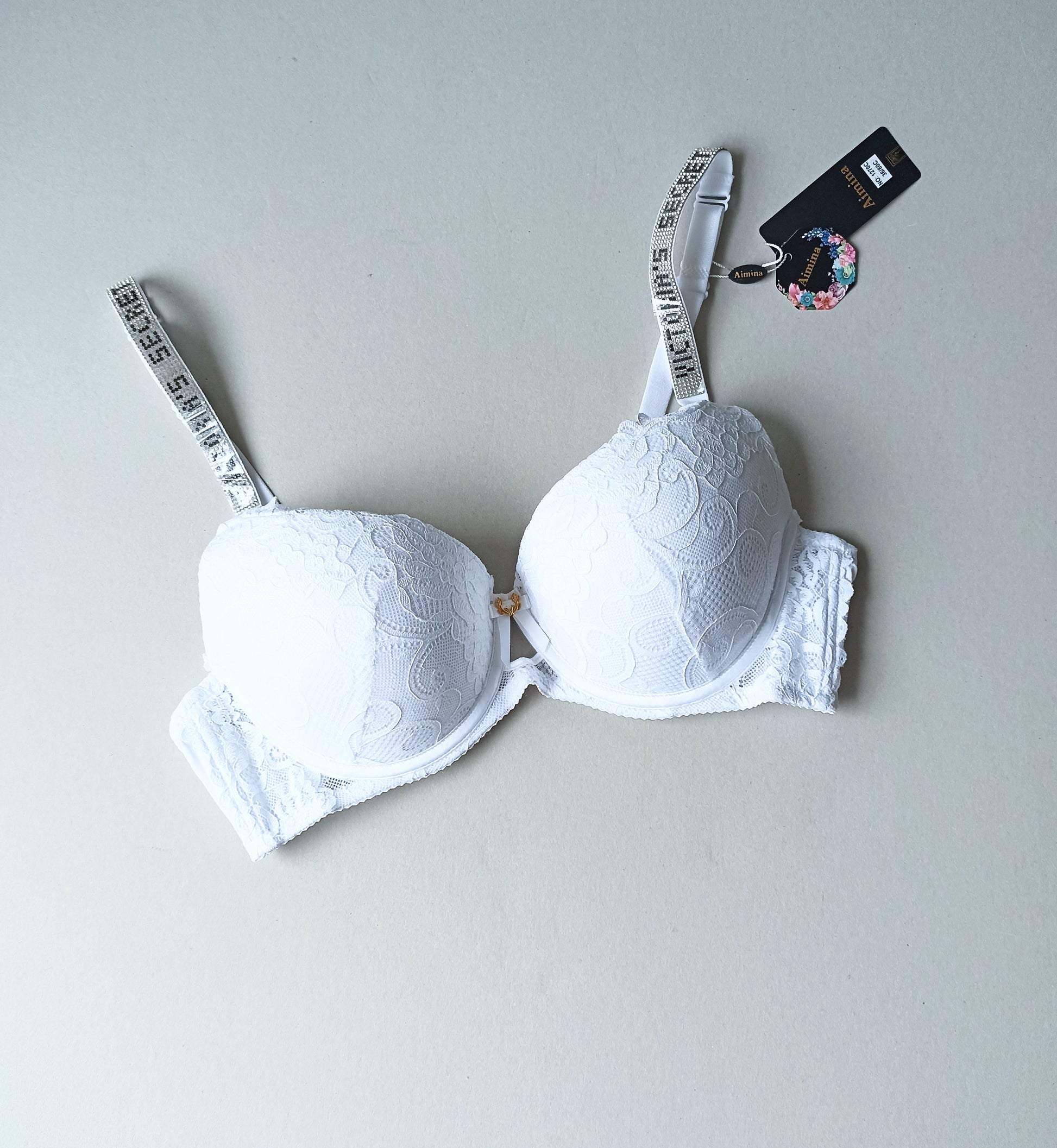 Gundanti nėriniuota liemenėlė su blizgiomis petnešomis, balta (80C-90C)