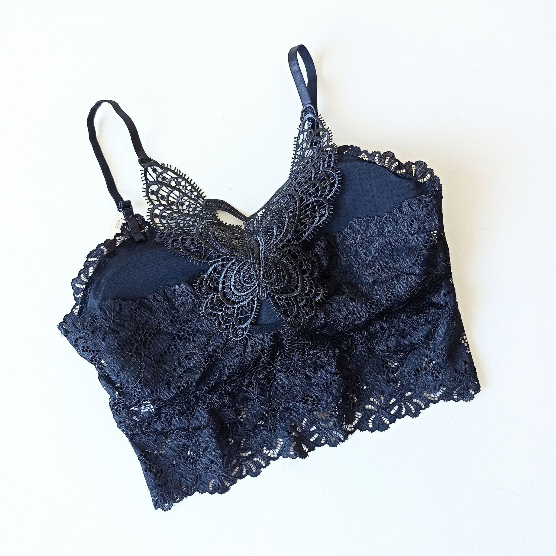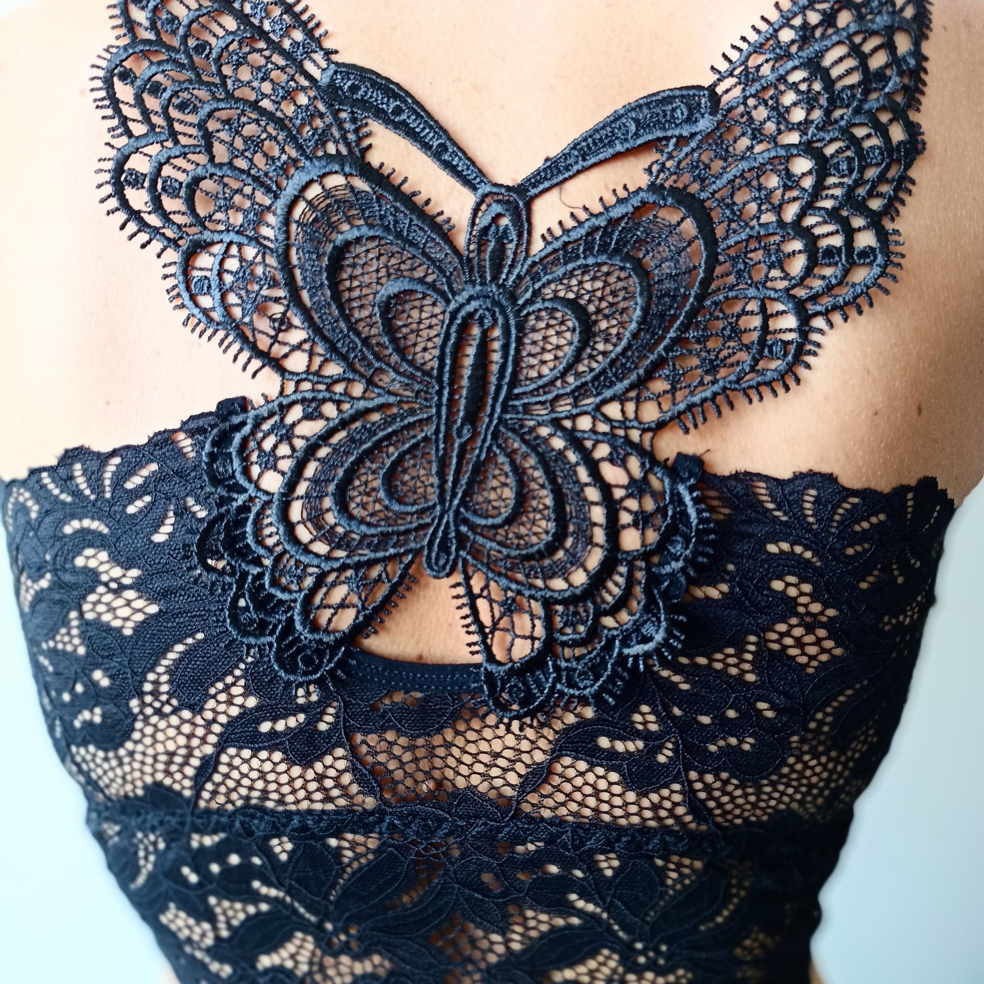 Nėriniuota braletė su drugelio forma nugaroje, juoda (S/M)
