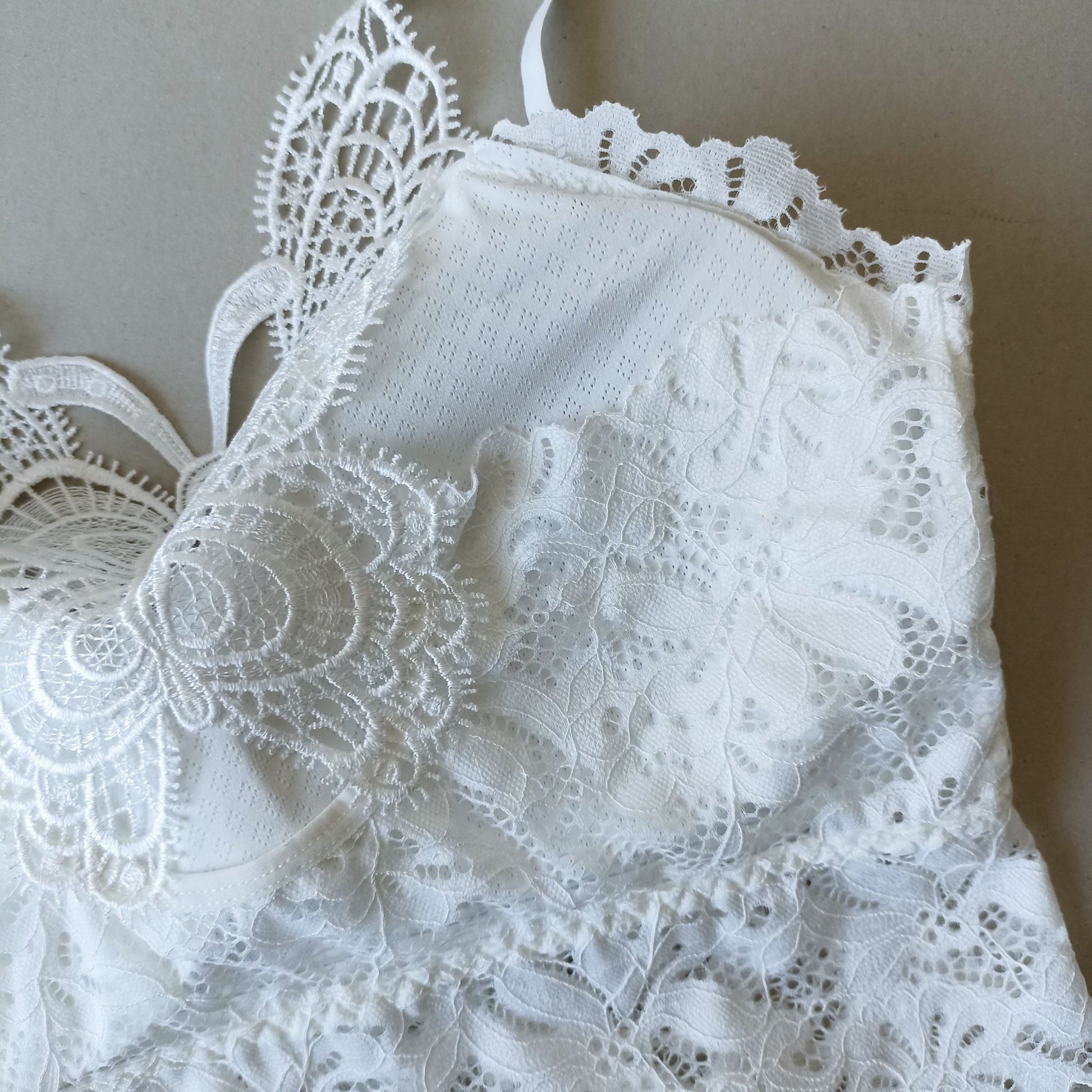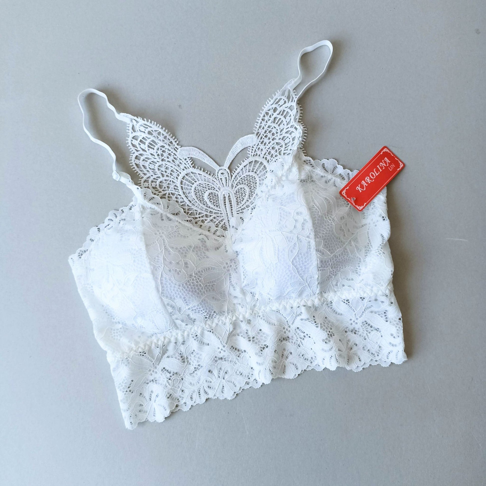 Romantiška liemenėlė - braletė be lankelių, su minkštomis pagalvėlėmis, kurios išsiima. Papuošta nėriniuotu drugeliu iš nugaros. Tai žavus ir funkcionalus modelis, skirtas didesnei krūtinei.
