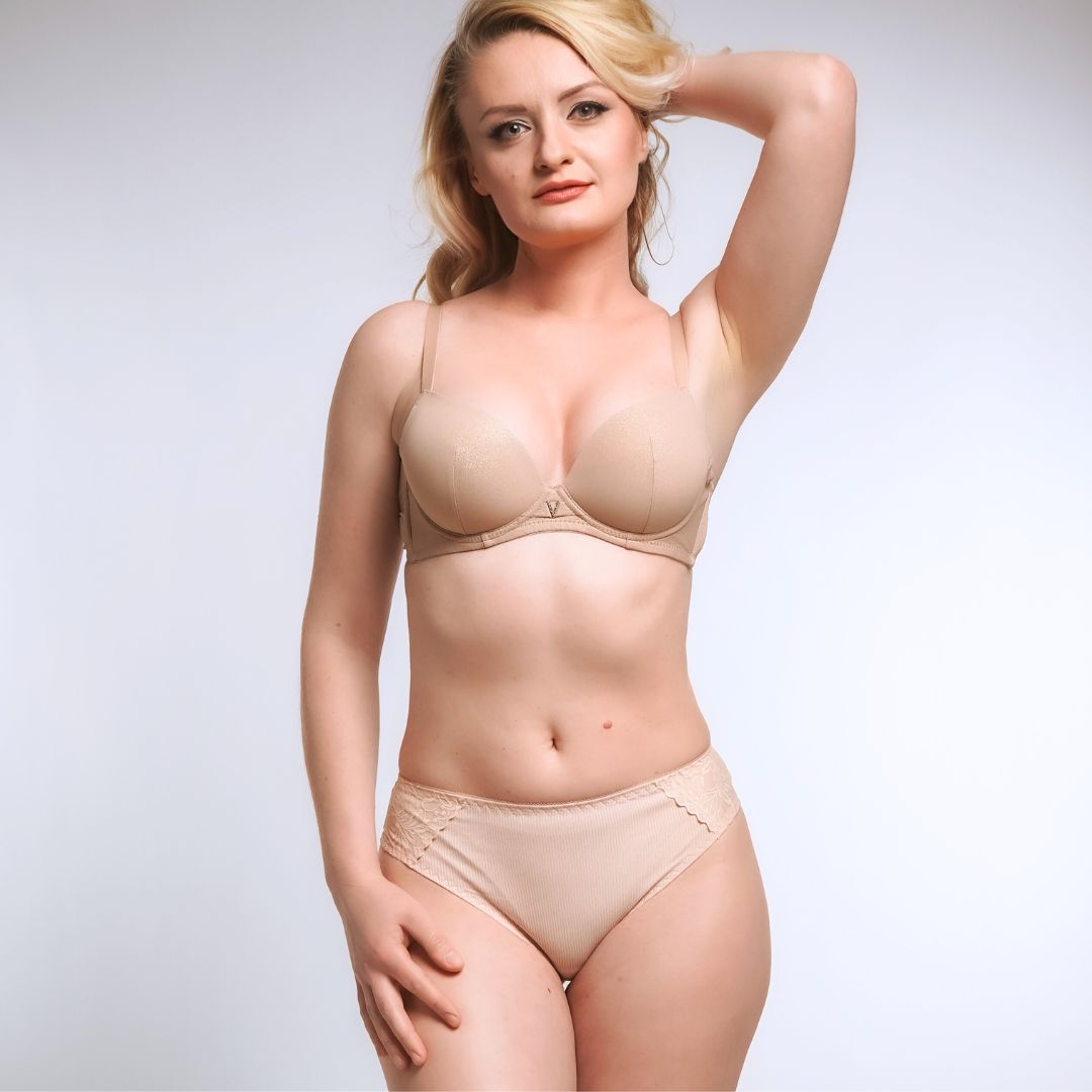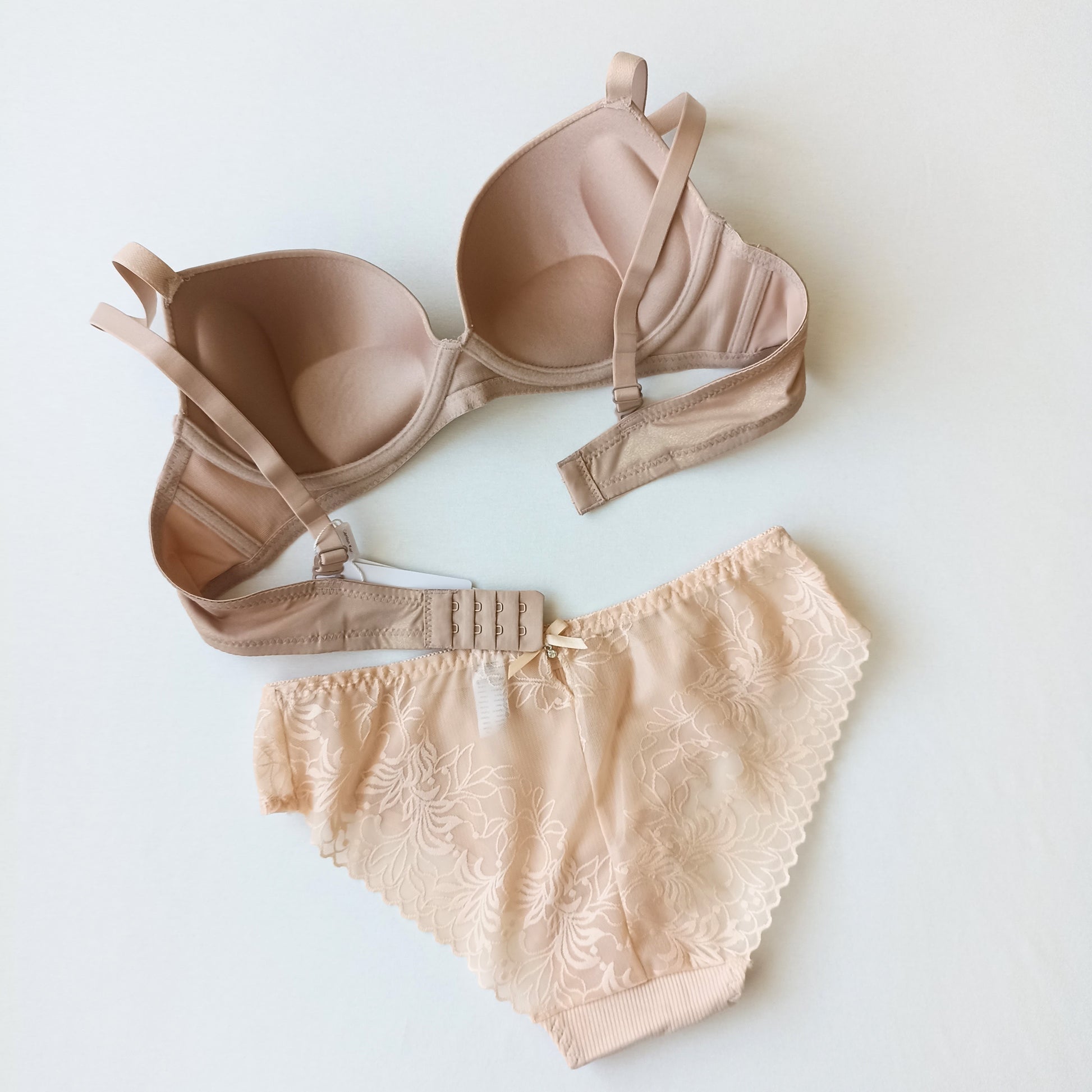 Pakietinta lygi push-up liemenėlė su blizgesiu ir medvilninės kelnaitės, kūno (80-95B)