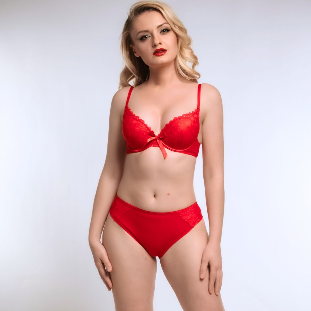 Romantiškas ir jausmingas apatinio trikotažo rinkinys, sukurtas moterims, kurios vertina komfortą ir subtilią prabangą. Liemenėlė su lankeliais ir pakietintais, išformuotais push-up kaušeliais suteikia prilaikymą bei išryškina krūtinės formą. Nusegamos, reguliuojamos petnešėlės leidžia pritaikyti dėvėjimą pagal poreikį, suteikiant dar daugiau universalumo. Prie liemenėlės priderintos nėriniuotos komfortiškos žeminto juosmens kelnaitės, kurios puikiai papildo rinkinį.