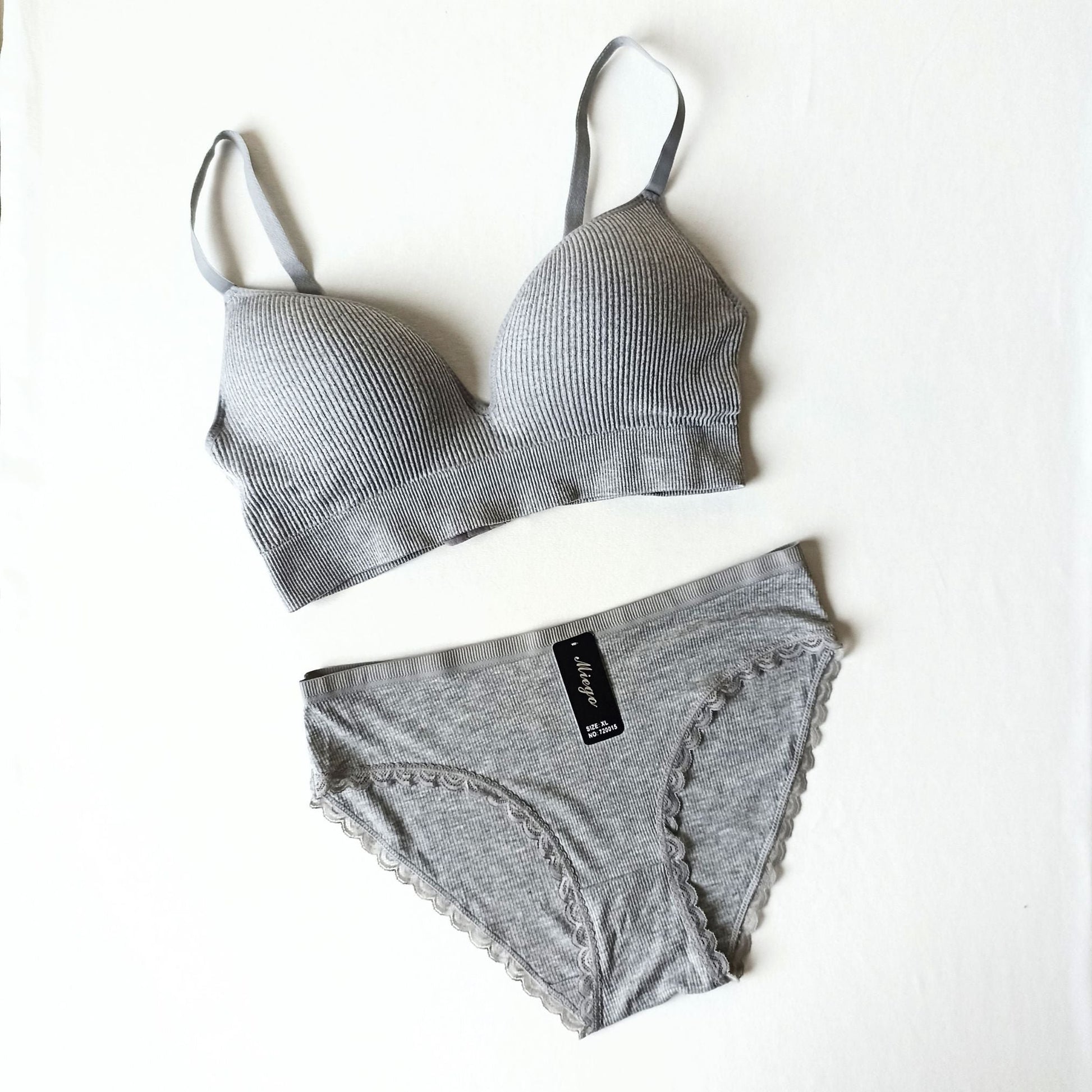 Sportinė liemenėlė be lankelių ir medvilninės kelnaitės, pilka (2XL/5XL)