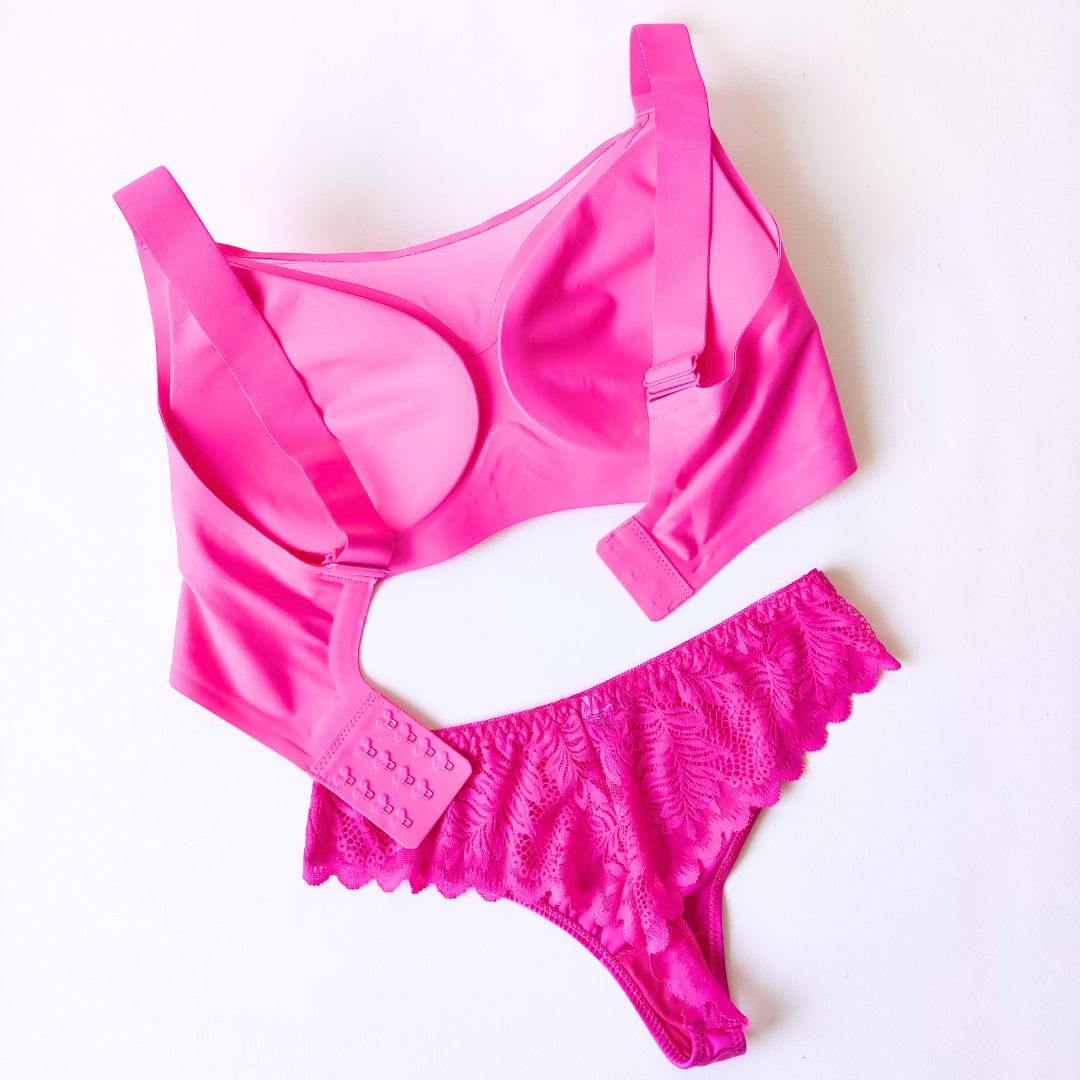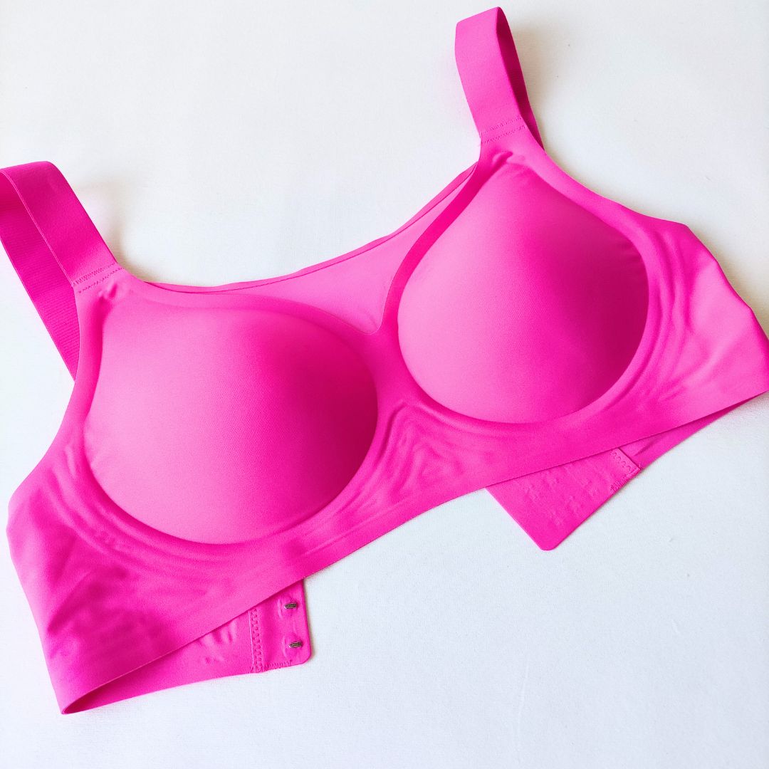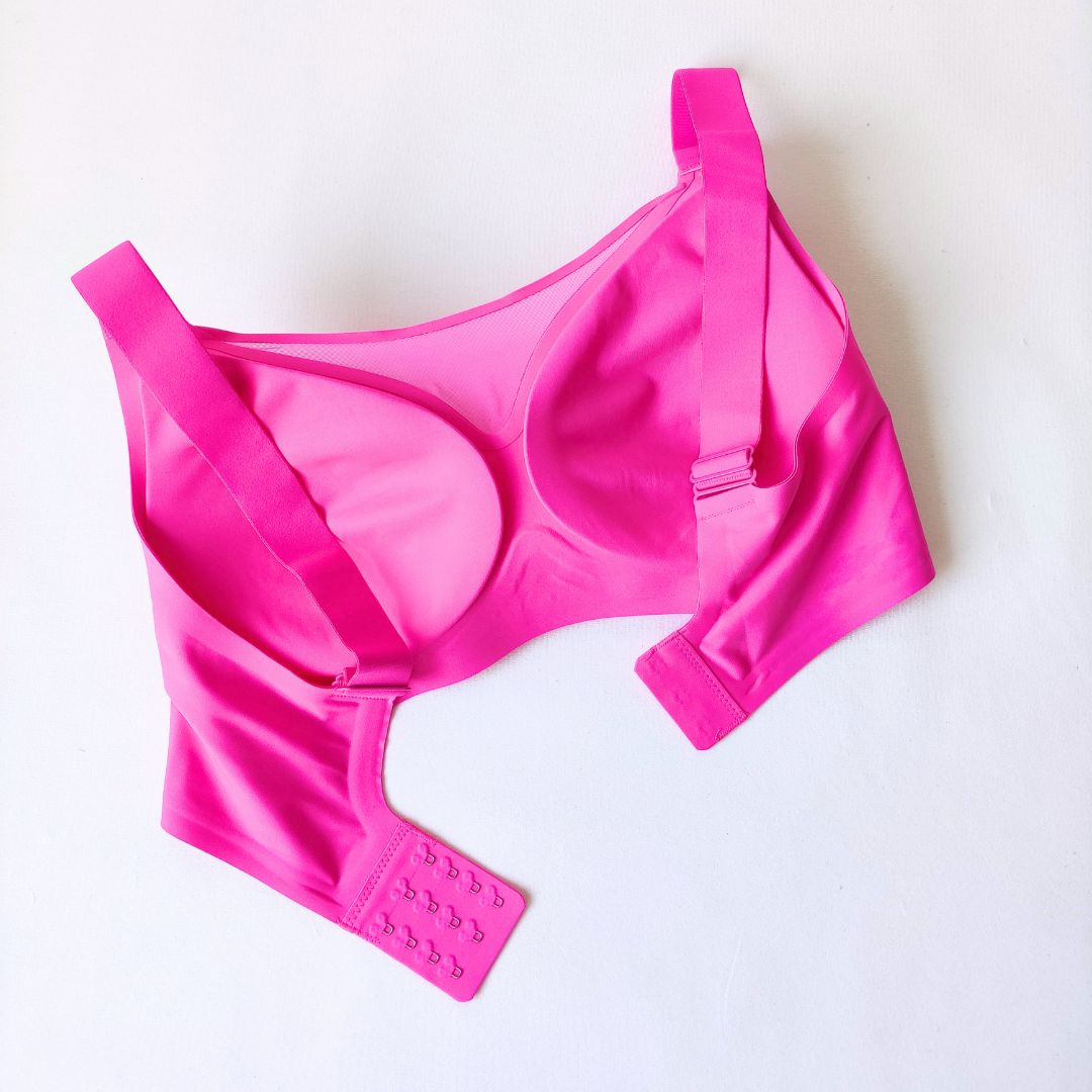 Ryškiai rožinė liemenėlė - braletė be lankelių didesnei krūtinei. Itin komfortiška, prie kūno prisitaikanti, judėsių nevaržanti lygi besiūlė. Puikiai tinka tiek sportui, tiek kadieniam dėvėjimui.